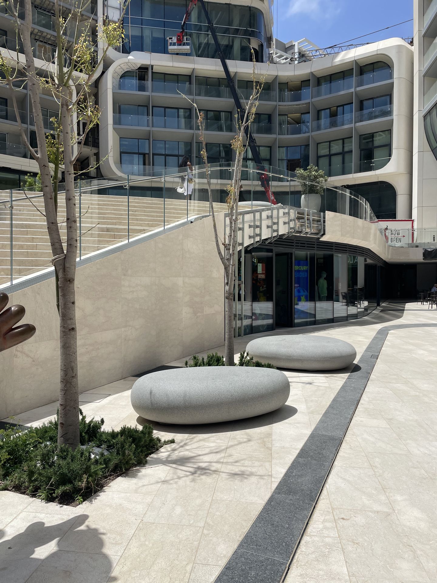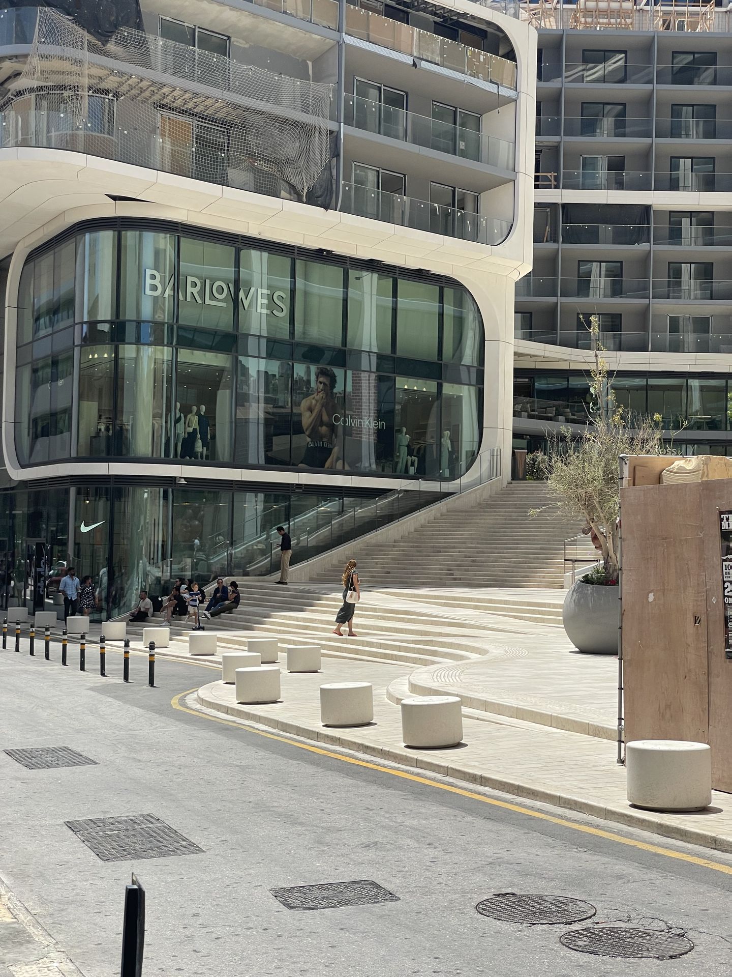 Maar waarom een hele blogpost over een sterk staaltje architectuur in Malta op de website van Servibo? Zoals je in de video al hebt gezien, is er ook meer dan genoeg aandacht besteed aan de omgeving en de buitenruimte in dit project. Onze partner, Escofet by Molins, heeft de eer gehad om zijn straatmeubilair in dit project te leveren.